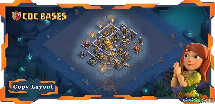 This particular layout features a centralized Builder Hall which is crucial for its security. Surrounding the Builder Hall, several defensive buildings such as cannons, archer towers, and dual-target defenses have been strategically positioned. Additionally, the use of traps is carefully planned to catch attackers off guard. This combination enhances defensive capabilities, making it difficult for opponents to utilize their troops efficiently. Hence, the design not only protects the Builder Hall but also disrupts the attack flow by challenging enemy strategies.