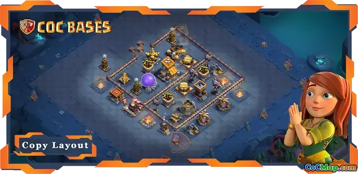 The Builder Hall level 10 base in Clash of Clans is designed with a strategic layout that maximizes defense and resource protection. At the heart of the base lies the builder hall, centrally located to ensure it is well-defended from enemy attacks. This central positioning allows for several defensive structures to be placed nearby, creating a stronghold that is difficult for opponents to breach.
