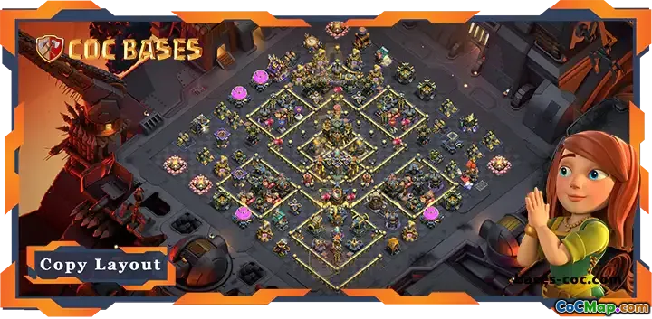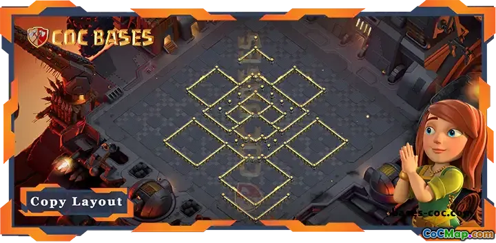 Included in this layout are well-positioned splash damage defenses and well-spread resource storages, preventing attackers from funneling easily. Perfect for competitive players, this layout boosts your war performance and overall defense. Use the provided link for quick access and straightforward implementation to elevate your Clash of Clans experience.