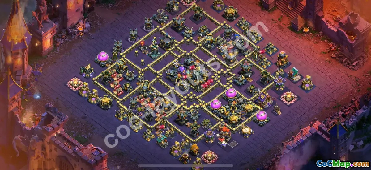 This optimized Town Hall 17 war base layout is designed to maximize defense during clan wars in 2025. It features strategic placement of traps, heroes, andClan Castle to thwart attacker strategies and protect key resources.