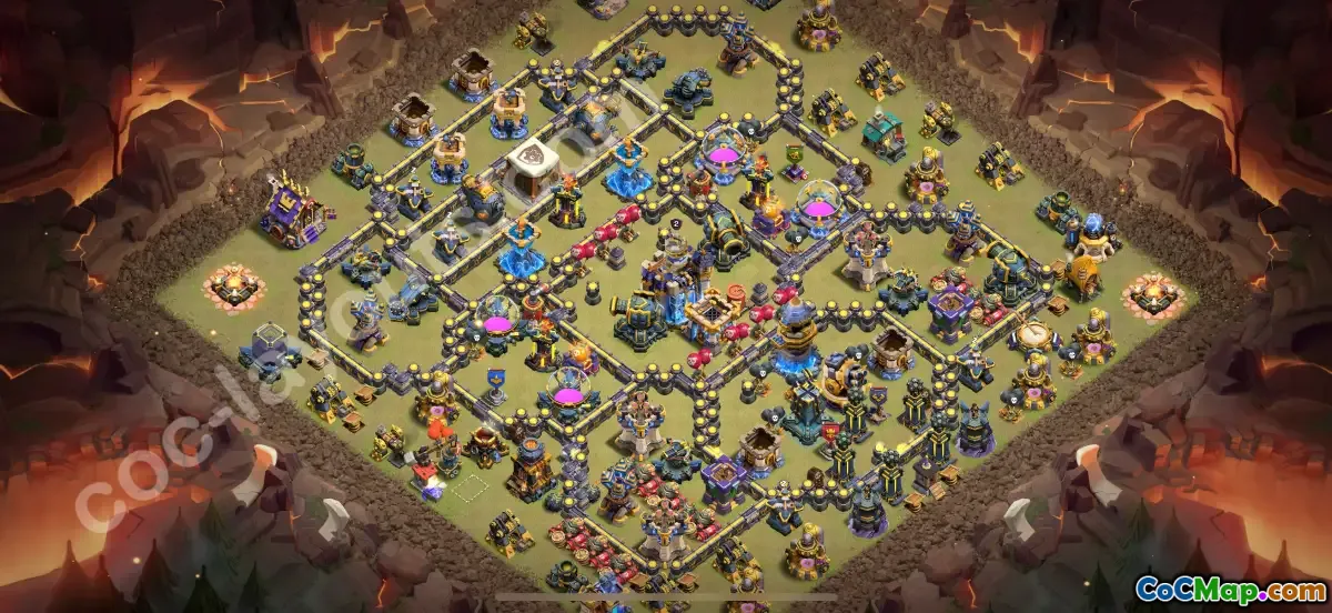 Discover the ultimate Anti 3 Stars War Base for Town Hall 18 in Clash of Clans, optimized for 2025 CWL battles. This carefully designed layout focuses on strong defenses and strategic placement, making it difficult for attackers to secure three stars. The layout features well-positioned defenses, including Inferno Towers, Eagle Artillery, and splash damage structures, to effectively counter common attack strategies.