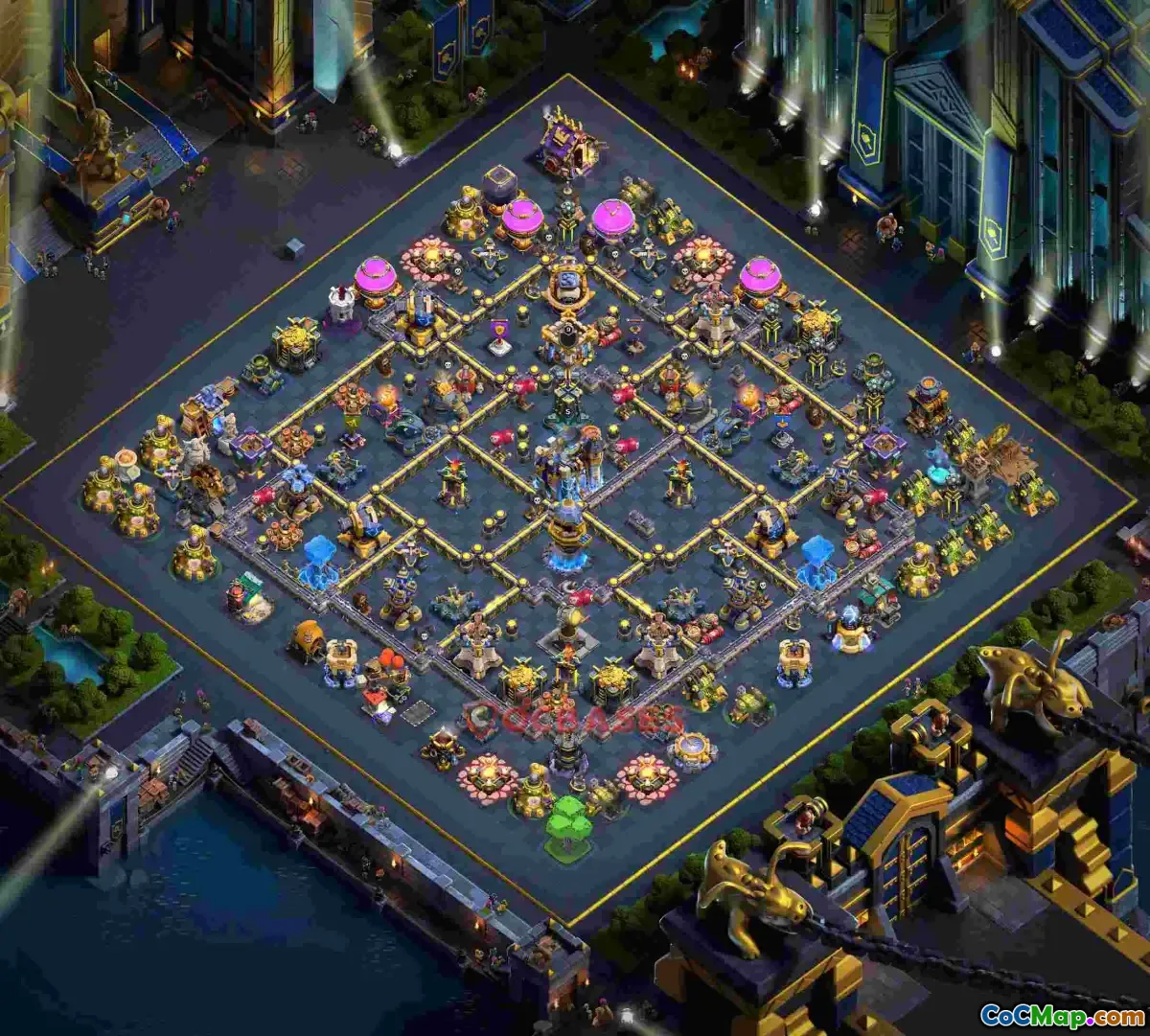 Introducing the Town Hall 18 Trophy Base - layout ID: 105p3, designed to maximize defense and trophy retention in Clash of Clans. This layout offers a well-structured defense system that effectively protects your resources and trophies during multiplayer battles, making it ideal for trophy pushing and competitive gameplay.