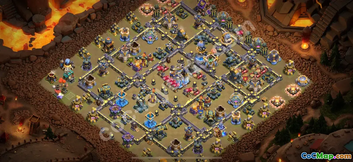With an optimized structure that includes well-placed traps, walls, and splash damage defenses, this layout provides maximum protection and resource safety. The base's design is versatile for various attack styles and clusters enemy troops while effectively defending against popular strategies. Perfect for Clash of Clans players aiming to secure victory and protect their war achievements, this layout's link offers a ready-to-use copy for immediate deployment in your TH18 war defenses.