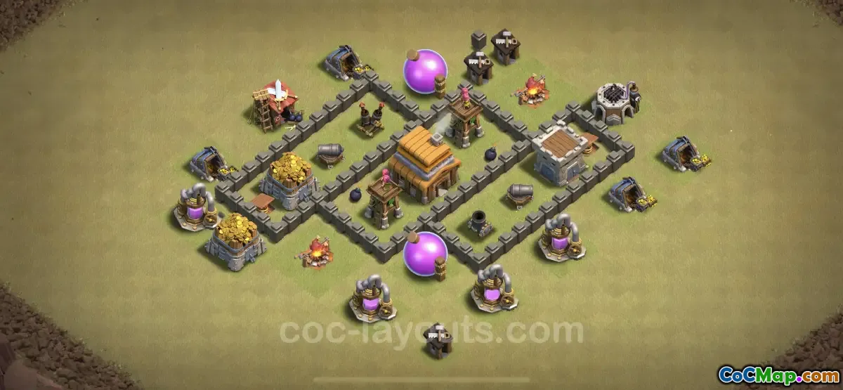 Effective TH4 base designs focus on centralizing crucial defensive structures, such as the Archer Towers and Cannons. By positioning these defenses centrally, players can create a formidable fortress that forces attackers to use more troops to destroy the outer layers before reaching the core. The layout should also consider adequate spacing to minimize splash damage from spells and area-effect troops, which can be devastating if defenses are clustered too closely together.