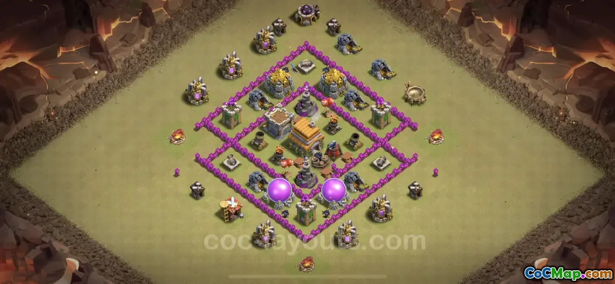 One key aspect of designing a successful anti-2 star TH6 base is the separation of defensive buildings and the strategic placement of walls. Proper wall management can slow down enemy troops, allowing defensive buildings enough time to inflict damage. It’s also beneficial to utilize splash damage defenses to cover more ground, especially against swarm units. The careful arrangement of buildings ensures that attackers are met with multiple layers of defense, making it difficult for them to take down the Town Hall or secure the two-star win.