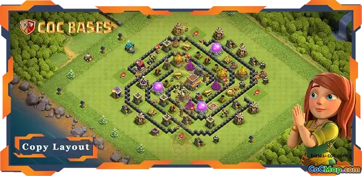 Ultimately, this Town Hall 8 defense base layout is a well-thought-out configuration that addresses the multiple challenges players face in Clash of Clans. By effectively combining defensive structures, strategic placements of defenses, and careful wall designs, players can create an impenetrable fortress that safeguards both their Town Hall and resources. Whether facing ground or air attacks, this hybrid layout is designed to withstand various offensive strategies, making it a top choice for TH8 players looking to defend their territory successfully.