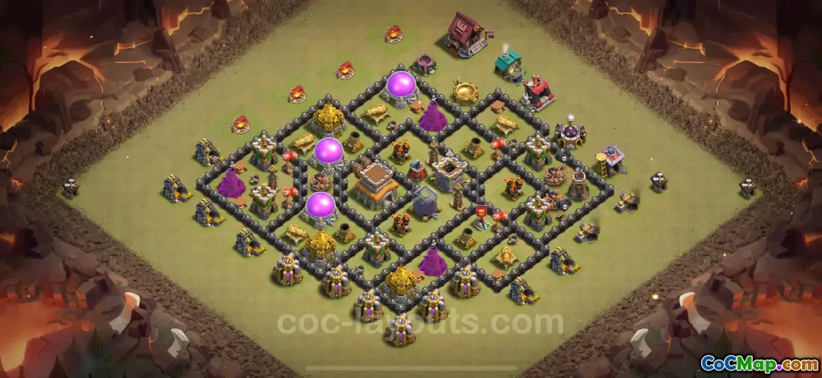 The best max level war base for Town Hall 8 (TH8) in Clash of Clans has been designed to provide optimal defense while also being effective for hybrid strategies in competitive gameplay. In 2025, players are encouraged to use specific layouts that maximize defensive capabilities, especially in Clan War Leagues (CWL). These layouts have been tested and proven to withstand various attack strategies commonly employed by opponents.