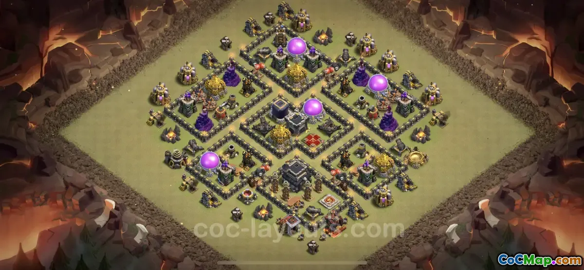 The Best War Base for Town Hall Level 9 in Clash of Clans is designed to provide robust defenses against various types of attacks, particularly those using air units like dragons. This base layout features strategic placement of defenses and traps that target aerial threats, ensuring that any opponent relying on air strategies will encounter significant challenges while trying to breach the defenses. Players can utilize this base layout effectively in Clan War Leagues (CWL) to protect their resources and trophies.