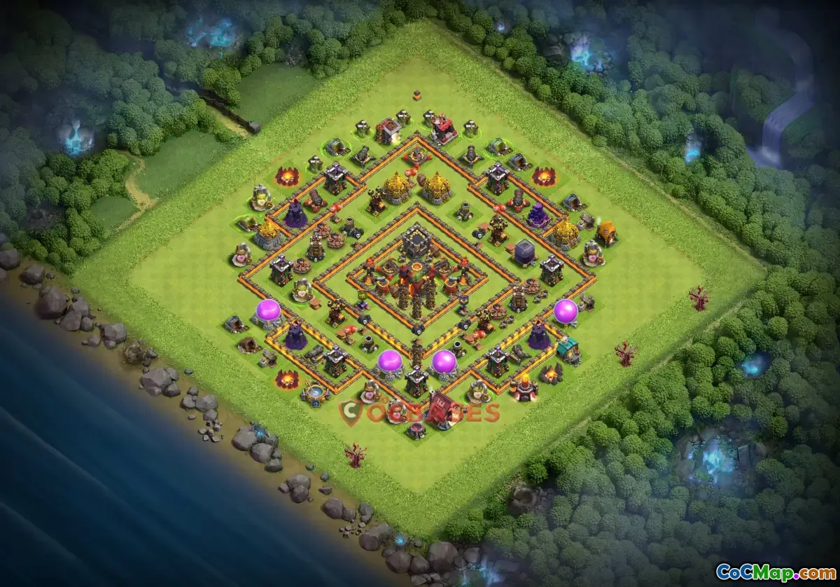 The unique island feature makes it impossible for opponents to access and destroy core buildings or loot resources, providing a significant advantage in war defenses. With an easy-to-copy link, this layout is ideal for clans seeking reliable protection and improved war performance against skilled opponents.