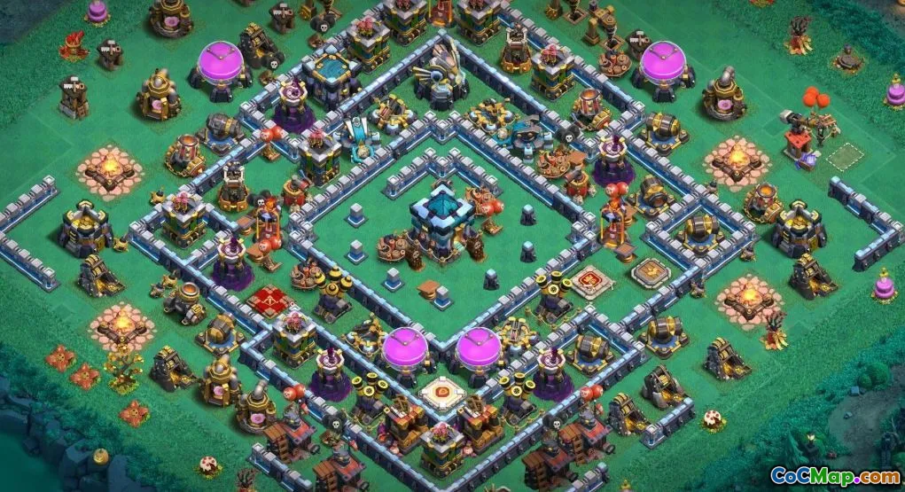 Base layouts for Town Hall 13 often include various structures and strategic placements to deter attackers. These layouts need to balance defensive buildings, such as archer towers and cannons, with resource storages and Army Camps. Players typically experiment with different configurations, looking to create a trophy base that minimizes the risk of losing rank points while maximizing the chances of defending against raids.
