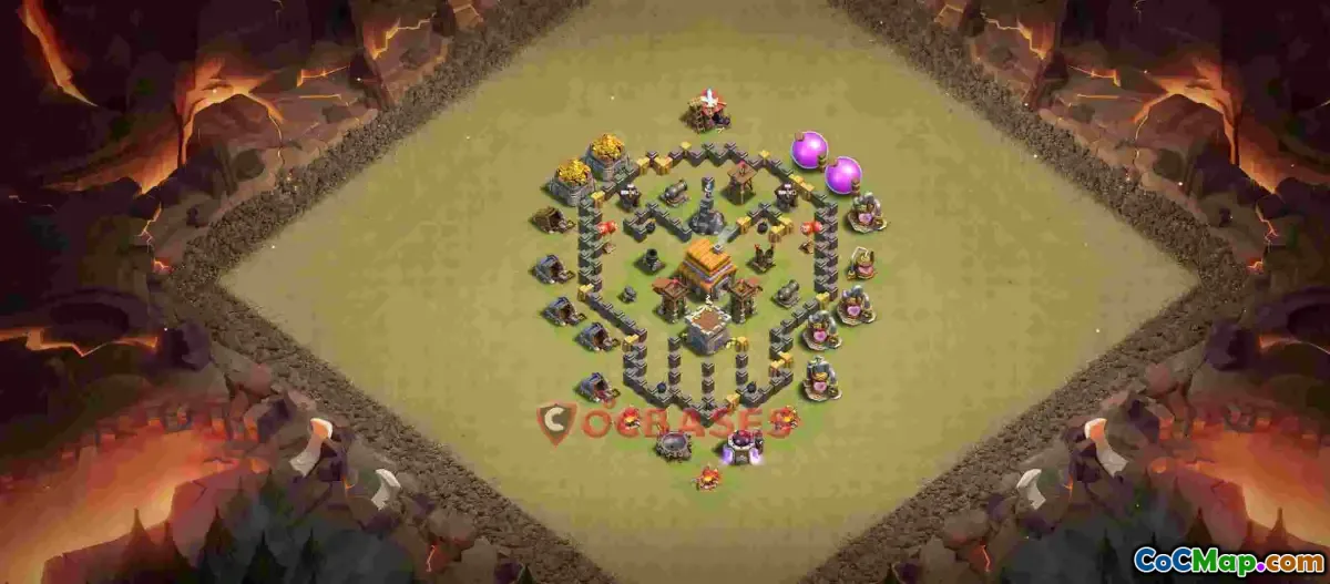 This Town Hall 5 base layout with a 448×2 arrangement offers a balanced and fun design tailored for various gameplay styles including war, farming, and trophy pushing. Its strategic placement of defenses and resources helps protect your key assets while maintaining an enjoyable and visually appealing layout.