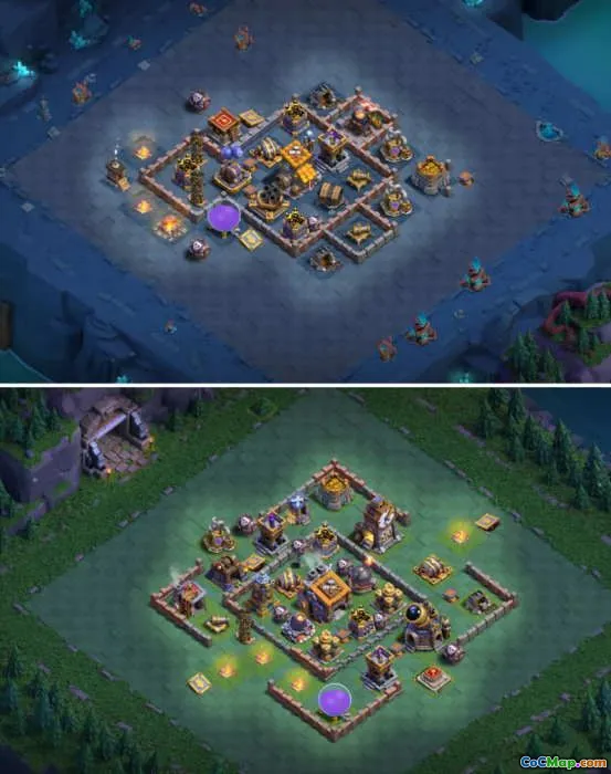 Copy base layout with link for Clash of Clans - builder hall 9, builder base, trophy base, farming base, coc map, base layouts