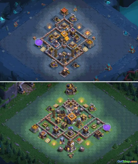Copy base layout with link for Clash of Clans - builder hall 9, builder base, trophy base, farming base, coc map, base layouts