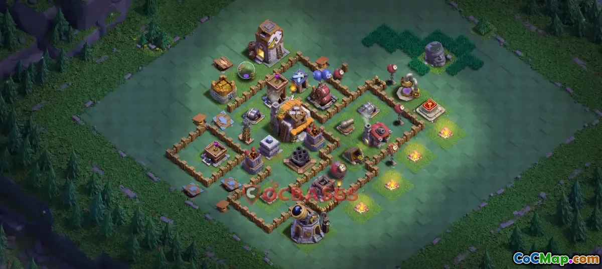 Discover the best Builder Hall 5 trophy base layout for Clash of Clans. Anti-2 star, air & ground defense, and troop delay. Copy the perfect BH5 base link!