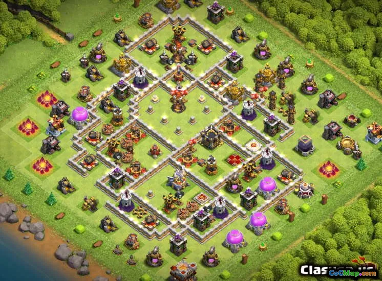 The Clash of Clans game features a variety of base layouts for players to optimize their town hall defense and attack strategies. At town hall level 11, players can access advanced building options, troops, and defenses that make it crucial to implement effective base designs. A well-planned base layout can significantly impact a player's ability to protect resources during raids and withstand attacks from opponents in war scenarios.