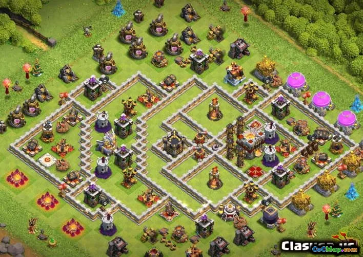Clash of Clans is a popular mobile strategy game that features several elements, including base building, resource management, and multiplayer war mechanics. One of the key aspects of gameplay is the layout of the player's base, which includes various defensive structures, resource storages, and town hall upgrades. Players often look for optimized base layouts to enhance their defensive capabilities and maximize their chances of success in battles against other players.