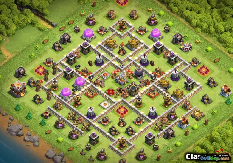In addition to home village layouts, Clash of Clans players focus on war bases, which are crafted for competitive settings. A solid war base for Town Hall 11 can be crucial for winning clan wars as it helps to protect against enemy attacks. These war bases are typically designed to divert attackers and safeguard key structures like the clan castle and the town hall itself. Players frequently exchange and develop various war base designs to outsmart their opponents and achieve victory in clan wars.