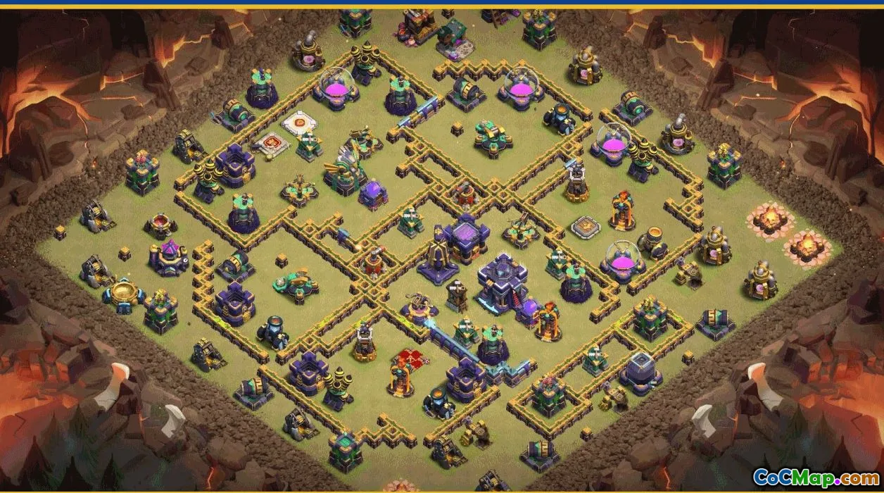 In addition to the general layout, there are specific designs for your home village, war base, trophy base, and clan war map. The home village layout focuses on resource protection and defense against standard attacks, while the war base is optimized to prevent enemies from securing stars and shields in clan wars. Trophy bases are designed to safeguard your ranking by making it challenging for opponents to win or fully raid your base during competitive matches. The Clash of Clans map and base layouts are all created to ensure balanced defense strategies and versatility across different gameplay scenarios.