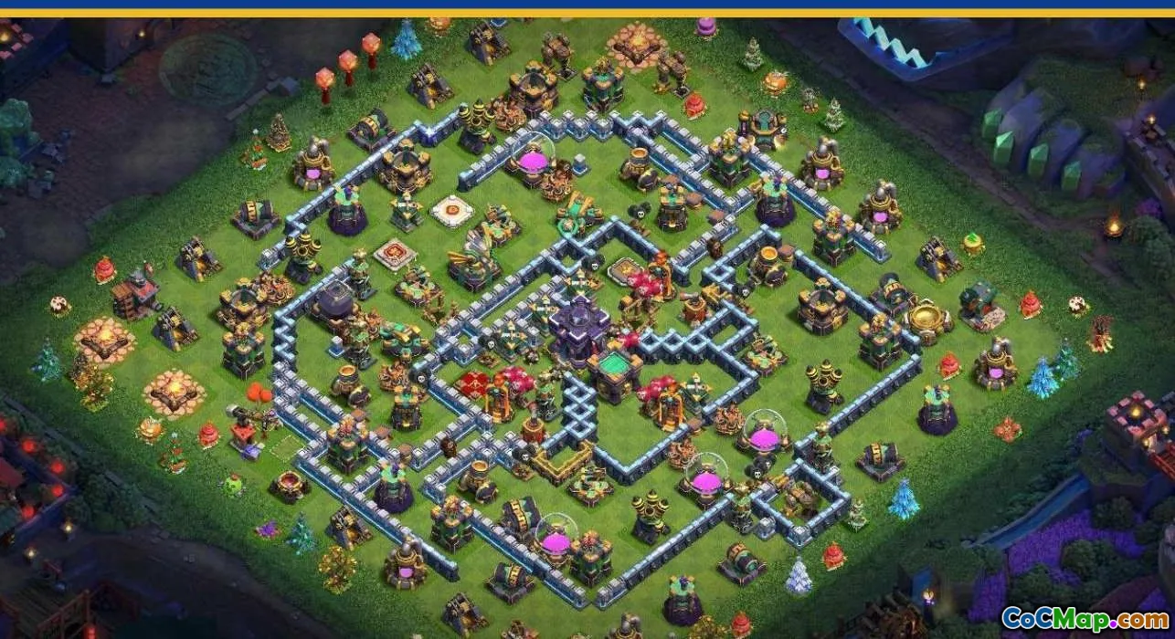 This description provides a comprehensive collection of Clash of Clans (CoC) layout templates, particularly focusing on the Town Hall 15. It includes various types of base designs suitable for different purposes such as defending the home village, participating in wars, and optimizing trophy gains. These layouts are essential tools for players aiming to improve their defensive strategy and overall performance in the game.