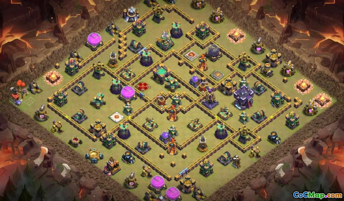 For a comprehensive gaming experience, the layout also includes specific designs for the home village, war base, and coc map. The home village layout focuses on safeguarding the core assets like the Town Hall, resource storages, and Clan Castle, while the war base layout is optimized to confuse and trap attacking troops, making it tough for enemies to achieve a high percentage of destruction. The coc map, on the other hand, provides an overarching view of the base’s placement within the entire layout, helping players plan strategic attacks or defenses accordingly.