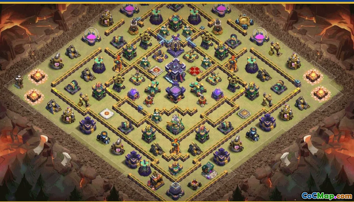 The webpage includes links and sections that highlight various types of base setups tailored for different purposes within the game. Town hall 15 layouts are showcased to provide players with effective defense and attack strategies. Home village layouts are designed to optimize space and resource protection, while war bases are structured to defend against attackers in clan wars. Trophy bases are also included to help players protect their rankings, and the overall Clash of Clans map offers a comprehensive view of different layout options.