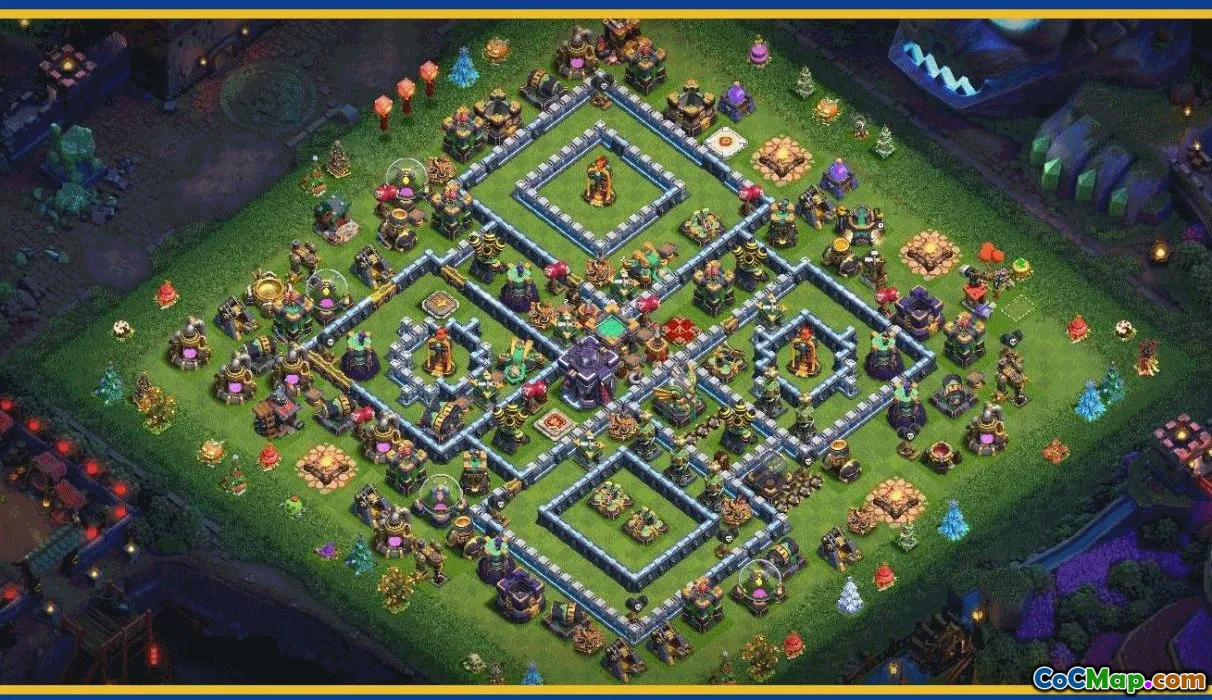 The base layout for Clash of Clans Town Hall 15 offers players a strategic design to optimize defense and resource protection. This layout typically includes well-placed defenses, such as cannons, archer towers, and wizard towers, to cover the entire base effectively. Additionally, the placement of walls and compartments helps in slowing down enemy troops and preventing them from reaching the core resources and Town Hall quickly.
