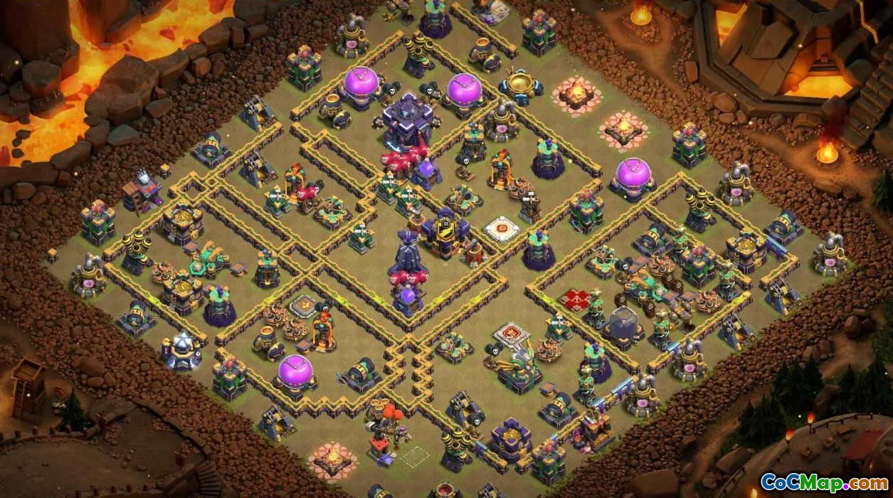 The base layout for Clash of Clans Town Hall 15 is designed to optimize defense and protection of key resources. It features strategic placement of defenses, walls, and traps to create a stronghold that can withstand various attack strategies. The layout is tailored to balance between an attractive appearance and functional defense mechanisms, ensuring players can defend their base effectively during wars or farming. The home village layout for Clash of Clans Town Hall 15 emphasizes secure storage of resources while maintaining offensive potential. Typically, resource storages are placed centrally with protective barriers around them, while offensive buildings and army camps are positioned outwardly to prevent easy raiding. This setup allows players to defend their resources and prepare for attacks simultaneously, making it ideal for those looking to protect their loot while maintaining a strong assault capability. For war bases and Clash of Clans maps, the focus is on creating a layout that confuses enemies and minimizes the damage caused by attacking units. War bases often feature non-traditional arrangements to mislead opponents and protect the Town Hall at all costs. The Clash of Clans map and base layouts available provide you with various options suited for different attack strategies, allowing players to choose or customize layouts to strengthen their defenses during clan wars and improve their overall game performance.