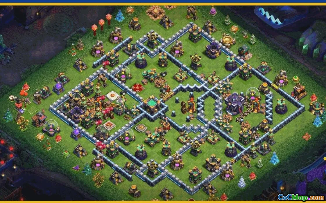 The base layout for Clash of Clans Town Hall 15 offers players a strategic design to maximize defense and resource protection. This layout typically incorporates well-positioned walls, defensive structures, and resource storages to create a balanced and resilient village. By carefully placing key defenses such as Archer Towers, Cannons, and Air Defenses, players can effectively ward off attacking enemies and protect their valuable resources.