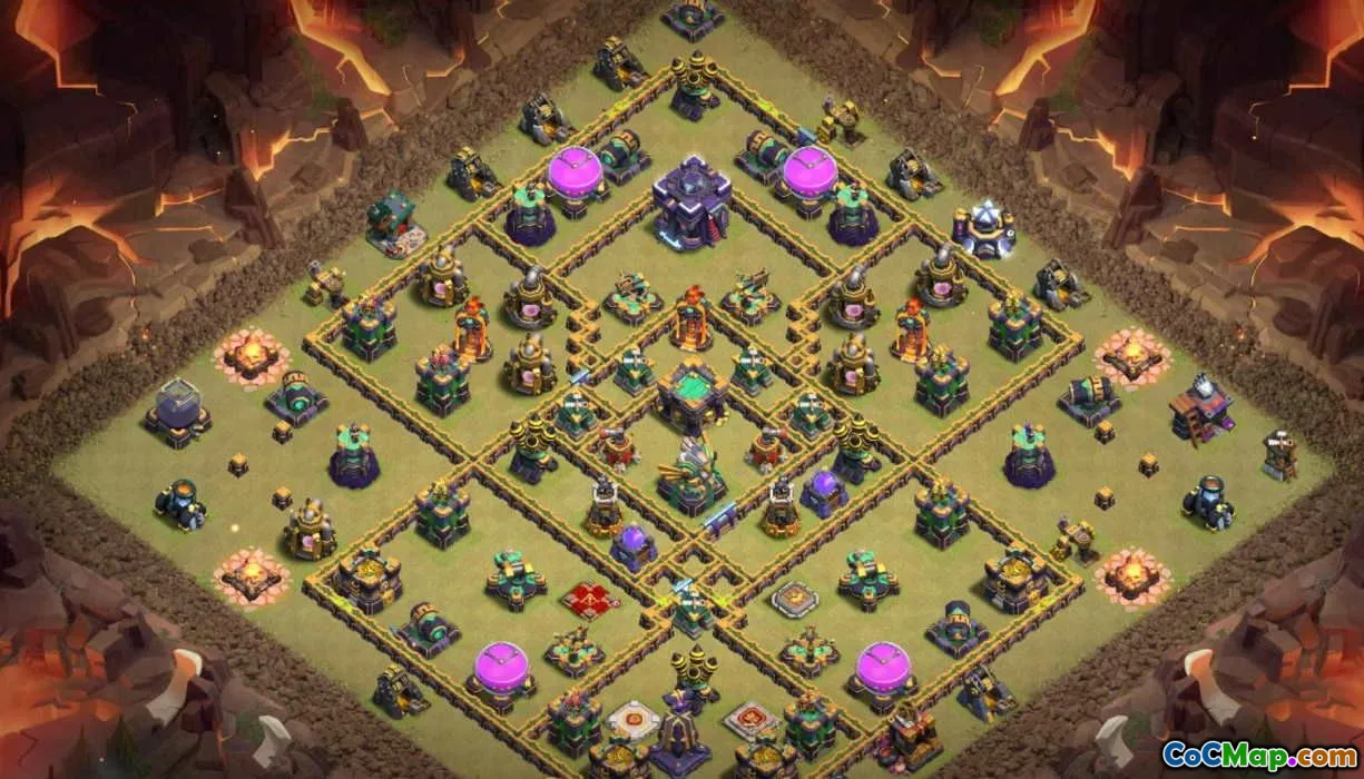 In addition to protecting resources, the layout supports effective defense during wars. The war base setup is carefully constructed to mislead attacking troops and direct them away from critical buildings. Strategic placement of air defenses, splash damage units, and heroes helps in creating a resilient war base that can withstand common attack strategies used by opponents in Clan Wars.