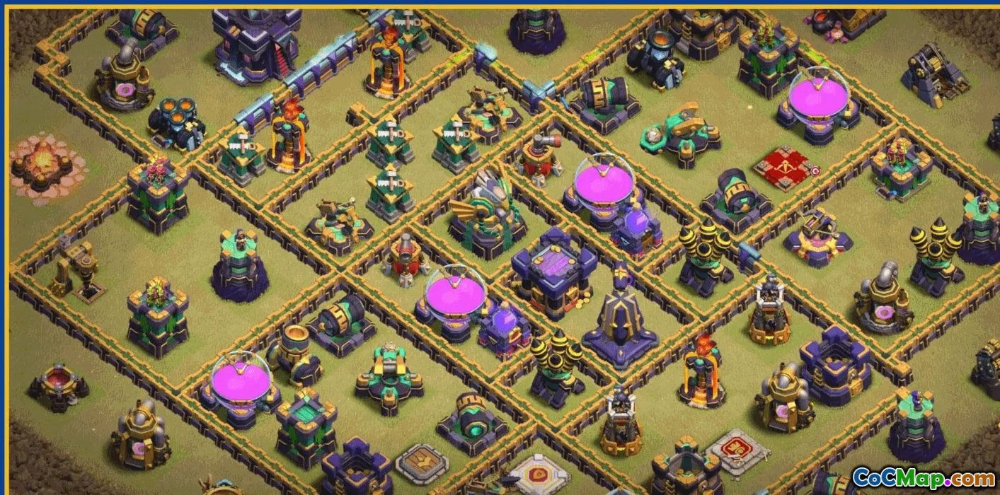 The provided content appears to be a base layout for Clash of Clans (COC), specifically designed for Town Hall 15. It includes various types of base layouts such as home village defenses, war bases, and general map arrangements. These layouts are essential for players aiming to protect their resources and defend against enemy attacks efficiently. Using well-structured base designs can significantly improve a player's success in both farming and war scenarios.