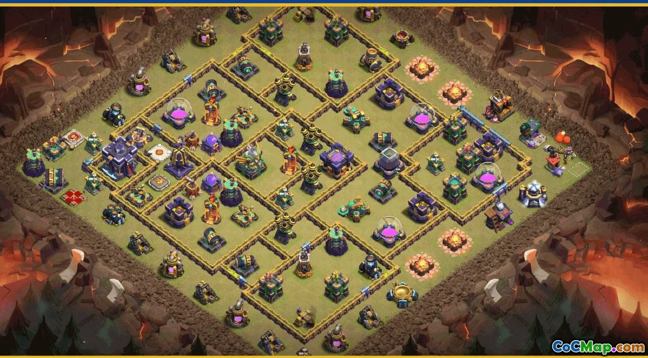 The base layout for Clash of Clans Town Hall 15 is designed to optimize defense, resource protection, and strategic gameplay. It includes well-placed defenses such as cannons, archer towers, and traps that create a sturdy barrier against enemy attacks. The layout aims to balance offense and defense, giving players a secure home village while allowing effective attack strategies. The design often incorporates symmetrical elements to distribute defenses evenly across the base, making it more challenging for opponents to find weak points.