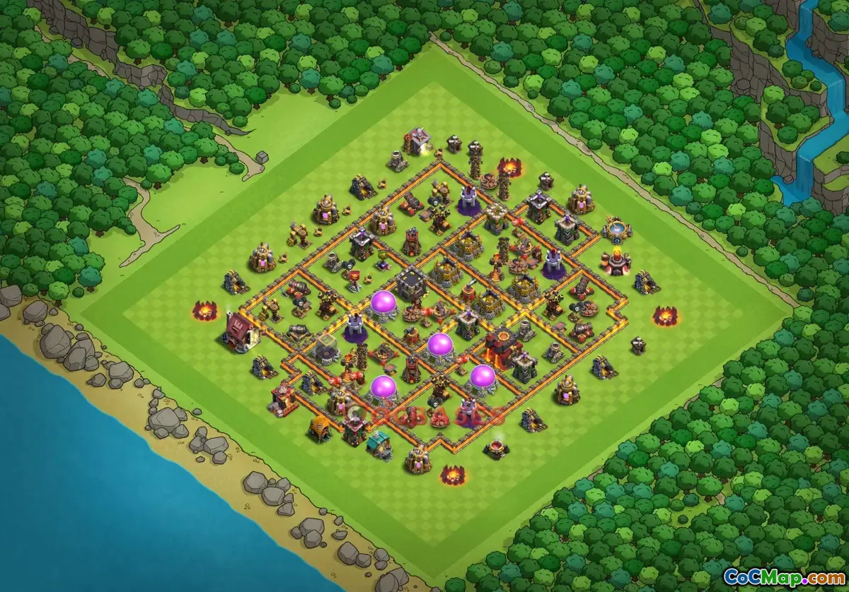 With a copyable base link included, you can easily implement this layout into your game. It’s perfect for players seeking a secure farming environment, especially when looking to upgrade quickly or farm for clan wars. Consistent defense and resource preservation make it a top choice for TH 10 farming strategies in Clash of Clans.