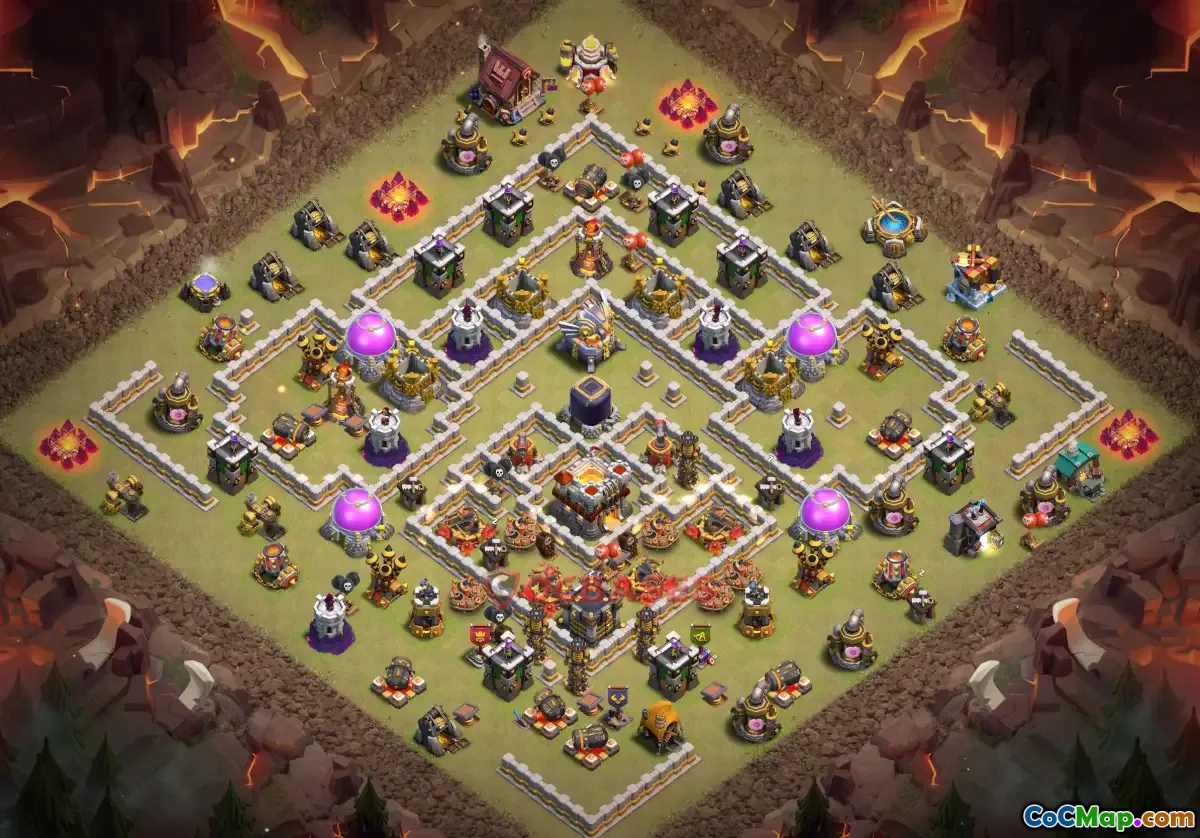 Strategically crafted for Town Hall 11 players, this war base layout offers optimal protection for your resources and Town Hall, making it difficult for enemies to secure stars. It incorporates well-placed traps, walls, and defensive structures to maximize damage and slow down attack strategies. The design also features centralized Clan Castle and Inferno Towers, ensuring they remain active and provide maximum coverage during raids.