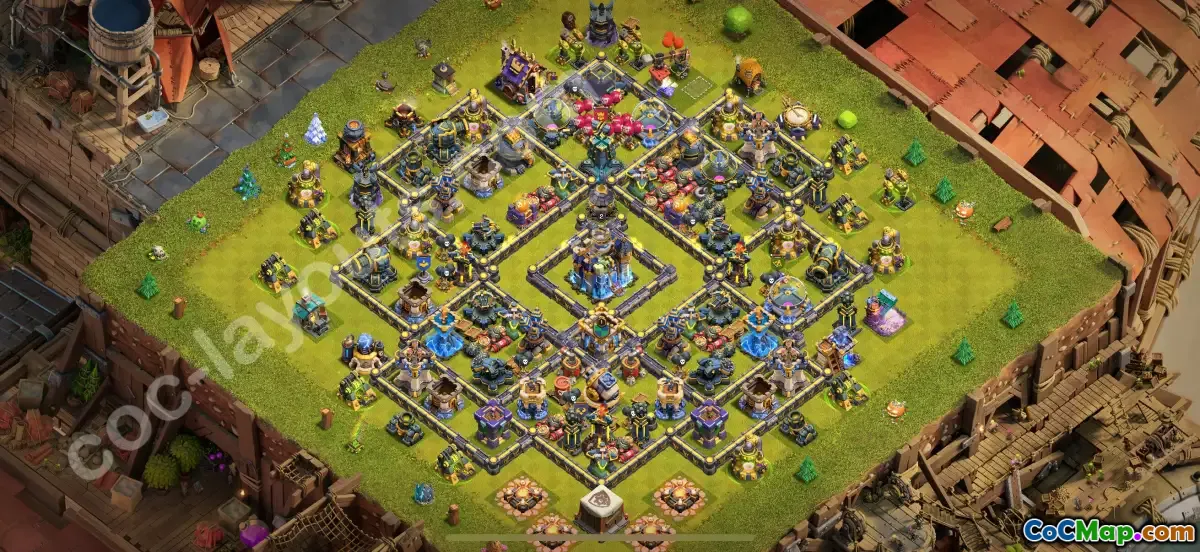 This Farming Base TH18 layout is specifically designed to maximize resource protection while providing efficient defense against attackers in Clash of Clans 2025. Its strategic placement of storages and defensive structures creates a strong barrier around your resources, making it difficult for opponents to raid your loot successfully.