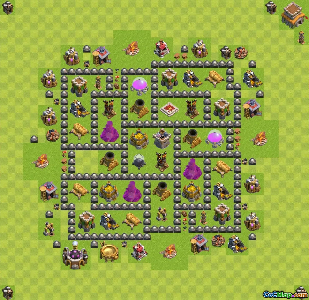 Another important aspect of a TH8 farming base is the placement of the Town Hall itself. While some players may opt to center their Town Hall to act as a lure for enemies, others might hide it behind layers of walls and defenses to minimize its exposure. By making the Town Hall less accessible, players can reduce the chance of losing trophies and protecting their loot more effectively.