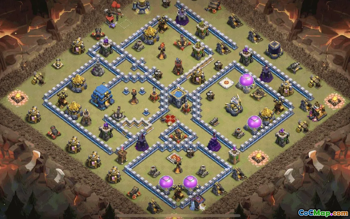 Enlace base híbrido TH17 superior para defensa de trofeos - Choque de clanes 2024