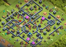 In Clash of Clans, the Trophy (Defense) Base designed for Town Hall Level 13 aims to provide an effective strategy for players focused on trophy collecting. Players at this level are often seeking a base layout that can withstand enemy attacks while allowing them to accumulate trophies steadily. This hybrid base design combines elements of both defensive capabilities and resource management, making it suitable for players who want to protect their trophies while still collecting resources successfully.