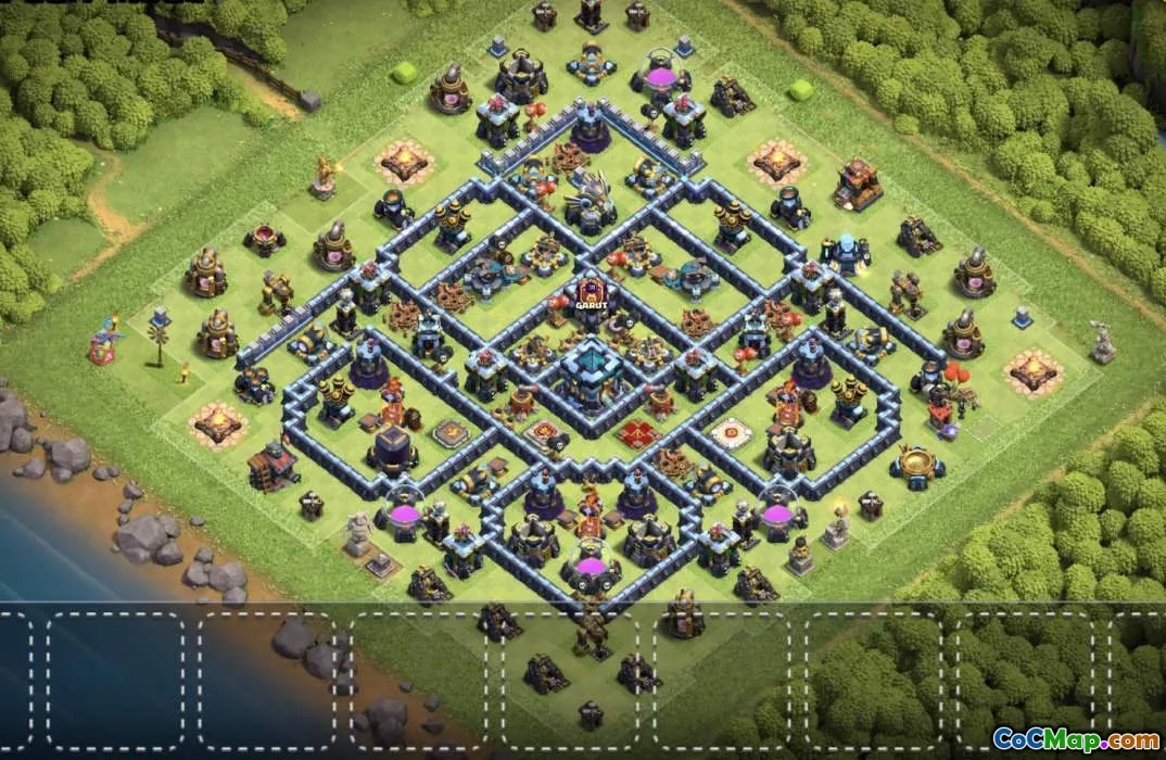Copy base layout with link for Clash of Clans - town hall 13, home village, trophy base, war base, coc map, base layouts