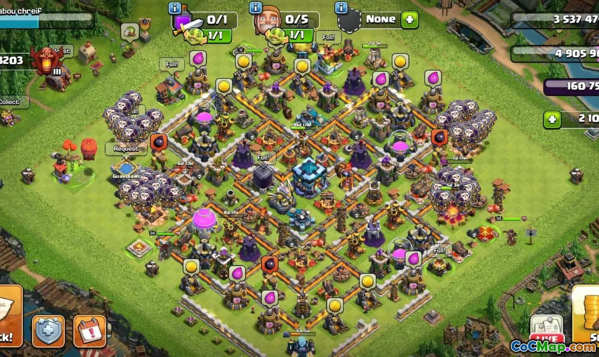 Copy base layout with link for Clash of Clans - town hall 13, home village, trophy base, war base, coc map, base layouts