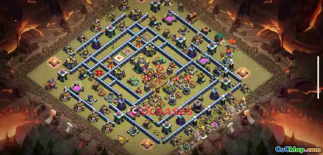 The Town Hall 14 war base for Clash of Clans is designed with a strategic approach to prevent opponents from achieving two stars during attacks. It utilizes a well-thought-out layout that reinforces defenses and encourages attackers to struggle in their attempts to secure higher star ratings. This base aims to be robust against various attack strategies used in Clan Wars, making it essential for any player looking to strengthen their war capabilities.