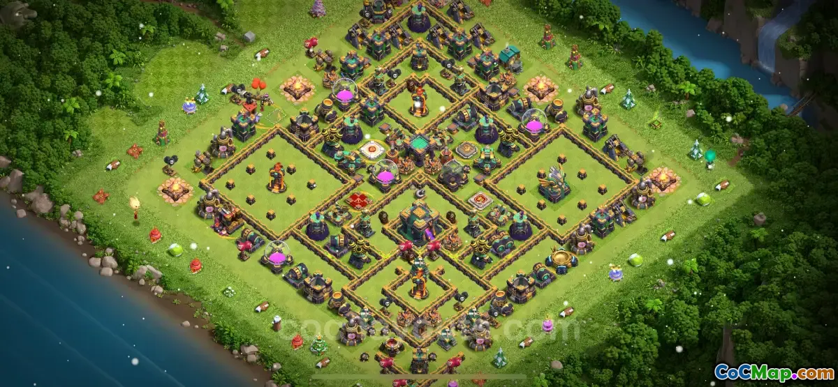 This Town Hall 14 base incorporates essential elements that cater to both defensive capabilities and trophy collection. The design typically features a central placement for the Town Hall and key defensive structures, creating a zone that is difficult for attackers to breach. By utilizing walls, traps, and strategically positioned defenses, the base can withstand attacks from various strategies that opponents might employ in the Legend League.