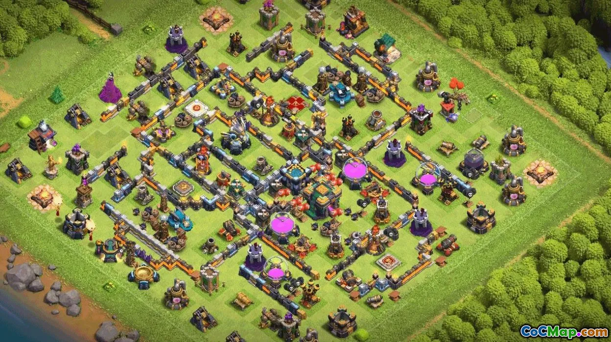 Copy base layout with link for Clash of Clans - town hall 14, home village, trophy base, war base, coc map, base layouts
