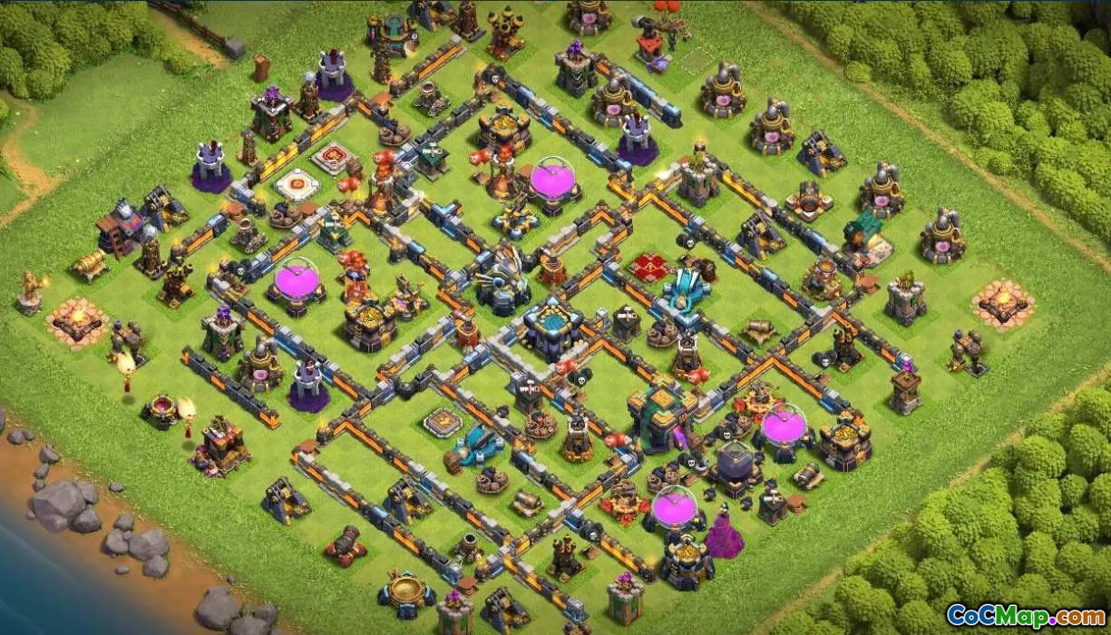 Copy base layout with link for Clash of Clans - town hall 14, home village, trophy base, war base, coc map, base layouts