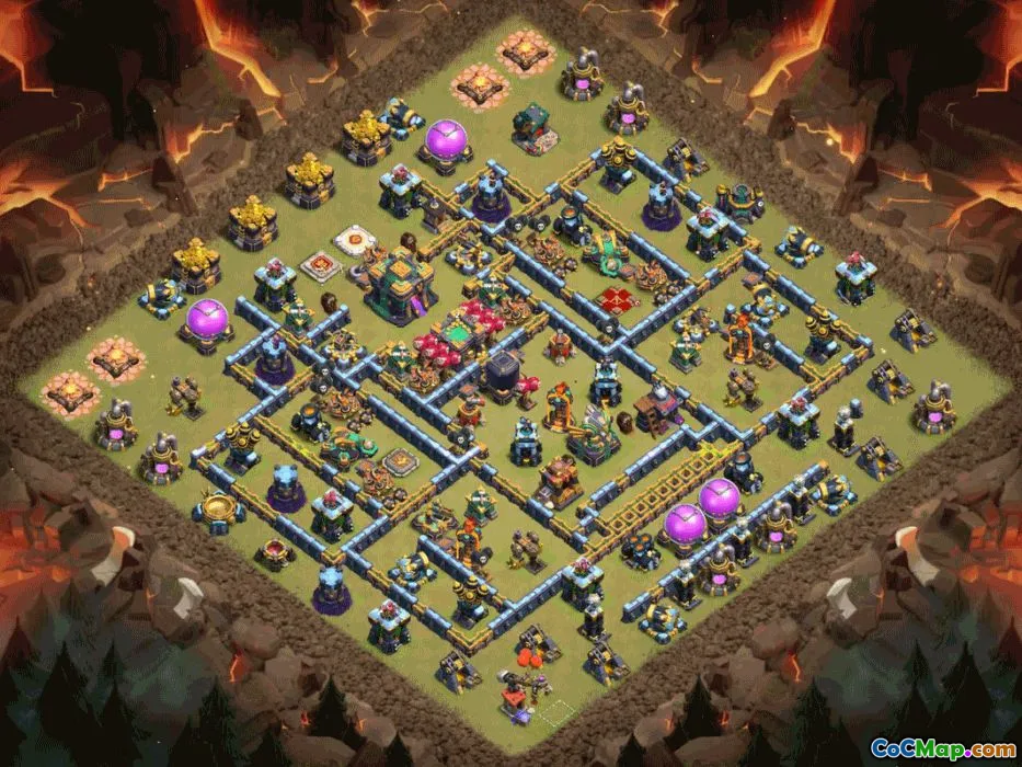 Copy base layout with link for Clash of Clans - town hall 14, home village, trophy base, war base, coc map, base layouts