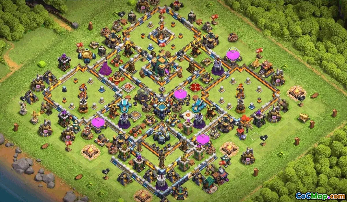 Copy base layout with link for Clash of Clans - town hall 14, home village, trophy base, war base, coc map, base layouts