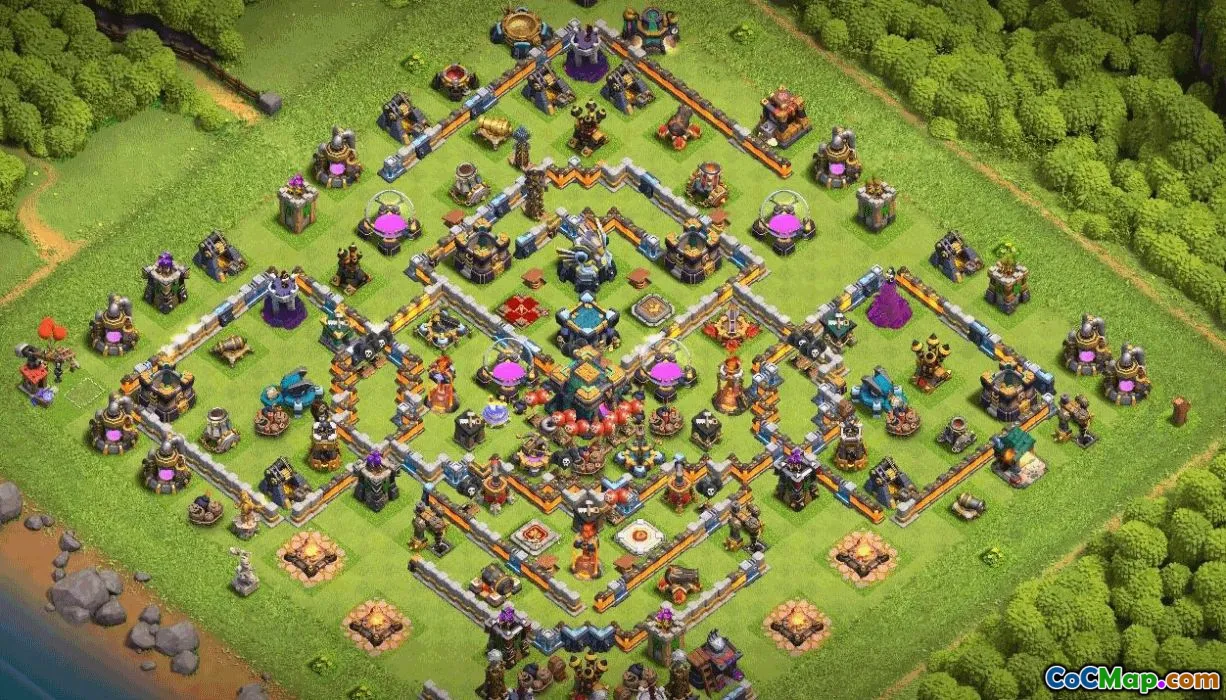 Copy base layout with link for Clash of Clans - town hall 14, home village, trophy base, war base, coc map, base layouts