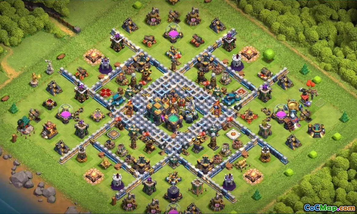 Copy base layout with link for Clash of Clans - town hall 14, home village, trophy base, war base, coc map, base layouts