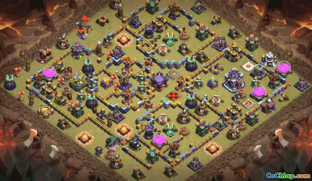 Enlace base híbrido TH17 superior para defensa de trofeos - Choque de clanes 2024