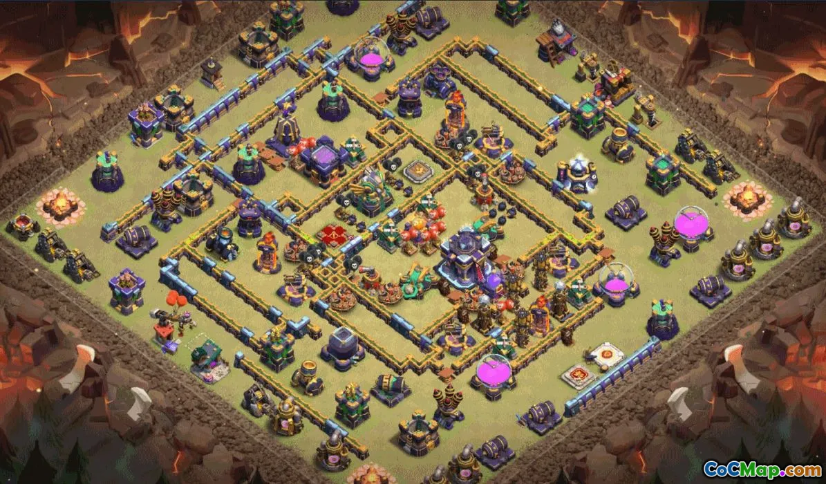 Enlace base híbrido TH17 superior para defensa de trofeos - Choque de clanes 2024