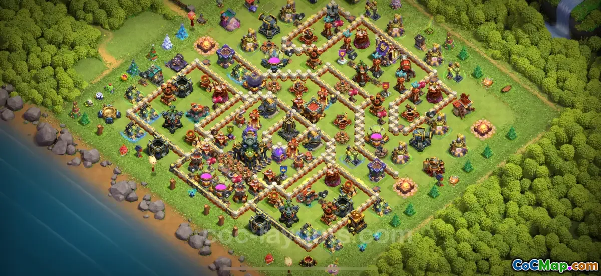 The Trophy Base for Town Hall Level 17 in Clash of Clans is specifically designed for players who are focused on maximizing their trophy collection while competing in the Legend League. This base layout has been optimized to provide strong defensive capabilities against various types of attacks, making it suitable for players aiming to maintain or increase their trophy count effectively. The design is built on strategies learned from experienced players in the community and reflects the latest trends and tactics relevant to the game as of 2025.